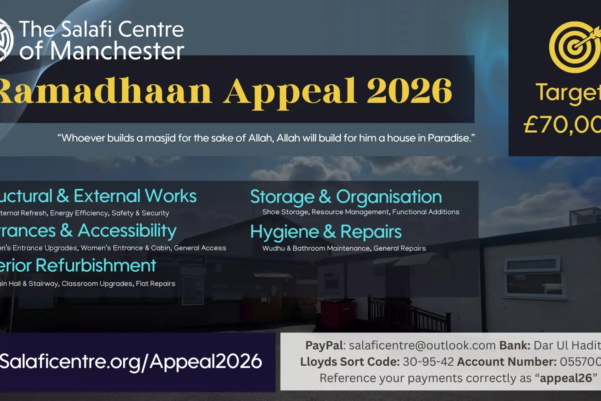 Support the masjid by making a small donation today – may Allah reward you.
