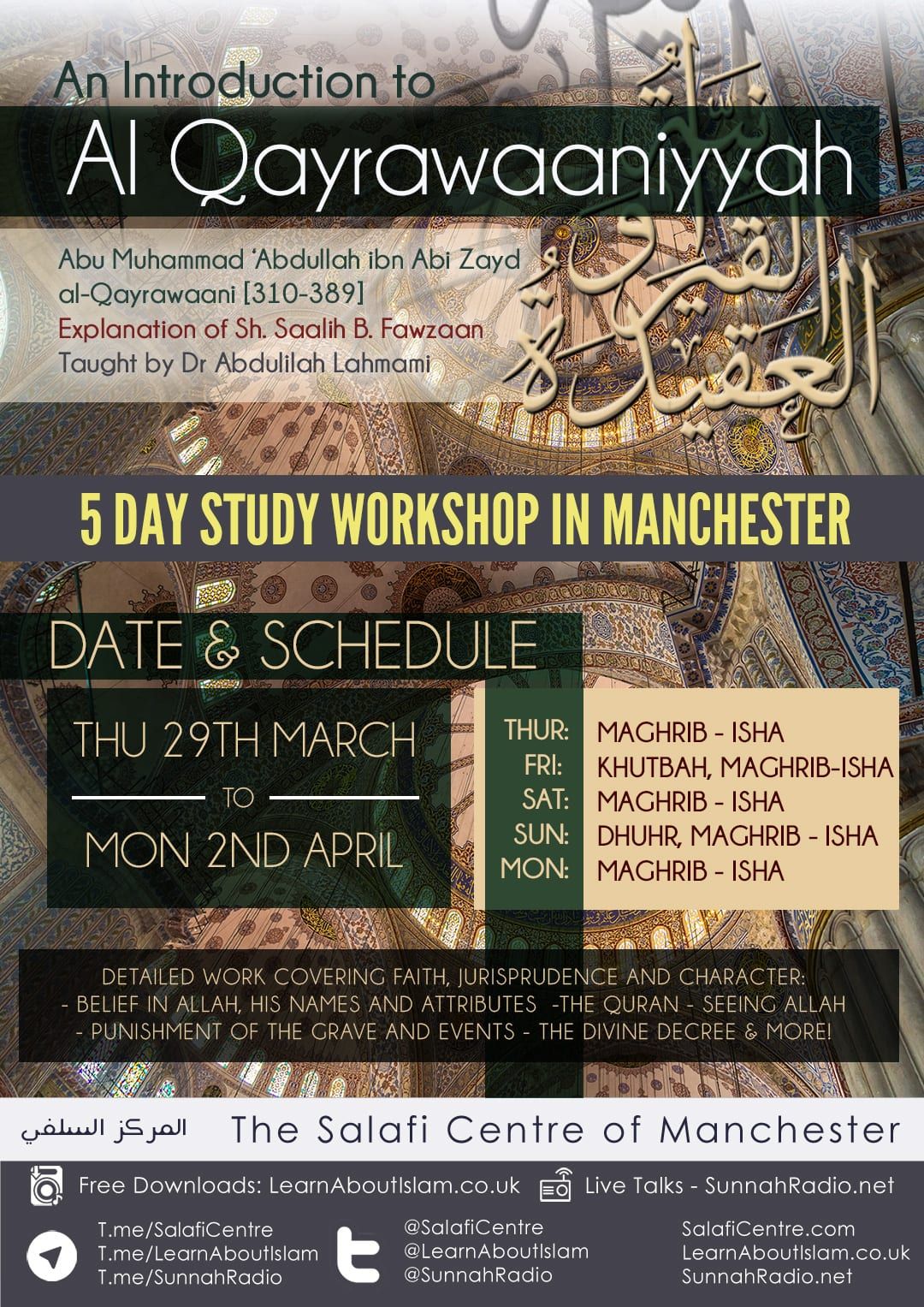 - All lessons will be conducted at The Salafi Centre of Manchester