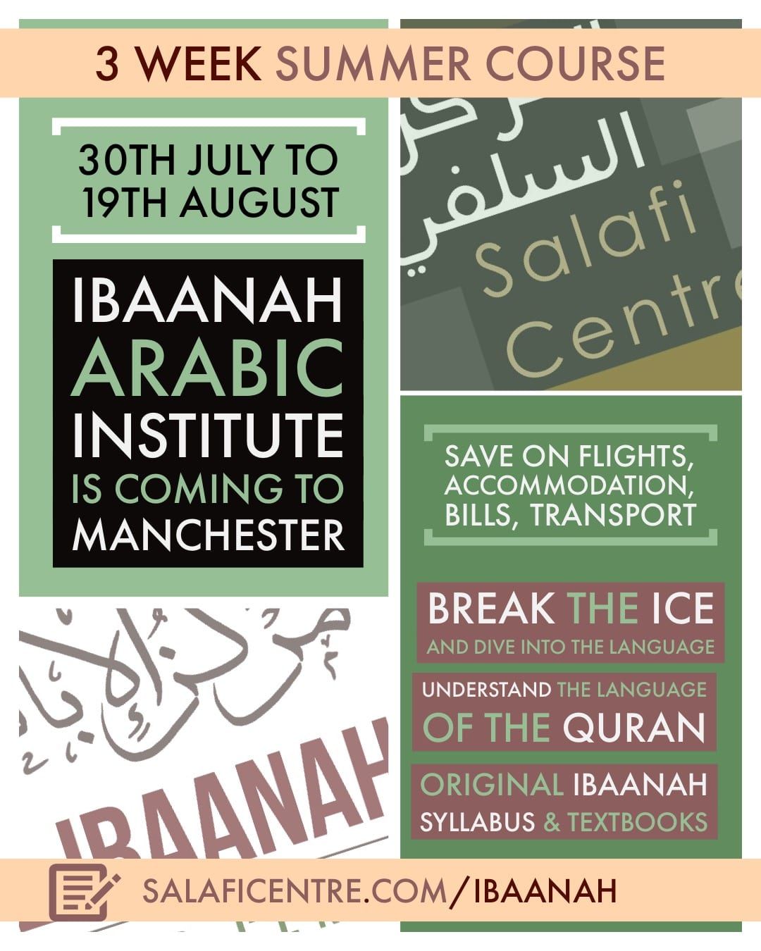 Ever wanted to learn the Arabic Language? Can’t travel abroad? Al Ibaanah Arabic Institute is coming to Manchester to conduct an exclusive 3 week summer course. Don’t miss out!