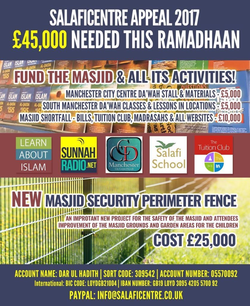 Please find donation details below or visit salaficentre.com/appeal2017 for further details.