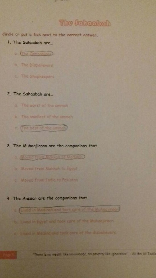 The Sahaabah- Young Learners 6-7 Class