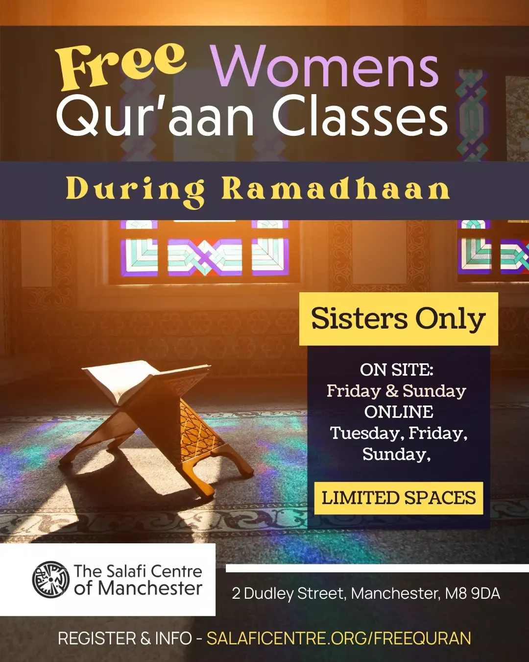 Location: Salafi Centre of Manchester, 2 Dudley Street, Cheetham Hill, Manchester, M8 9DA