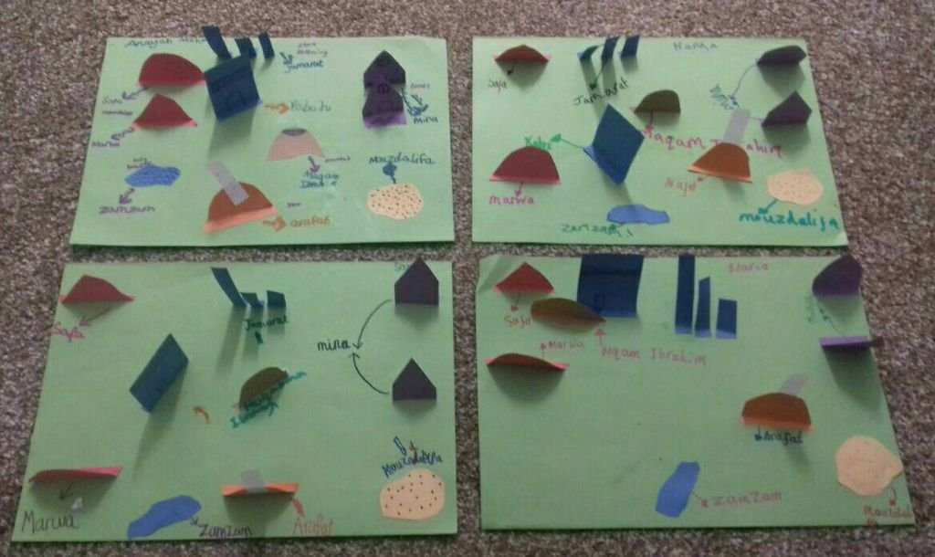 This week Young Learners 6-7 Class took part in a Hajj pop-up activity which involved making a Hajj map to help the children understand the story and the meaning of Hajj. The children created a pop-up poster using key vocabulary associated with the Hajj Pilgrimage. Have a look at their fantastic work presented above.
