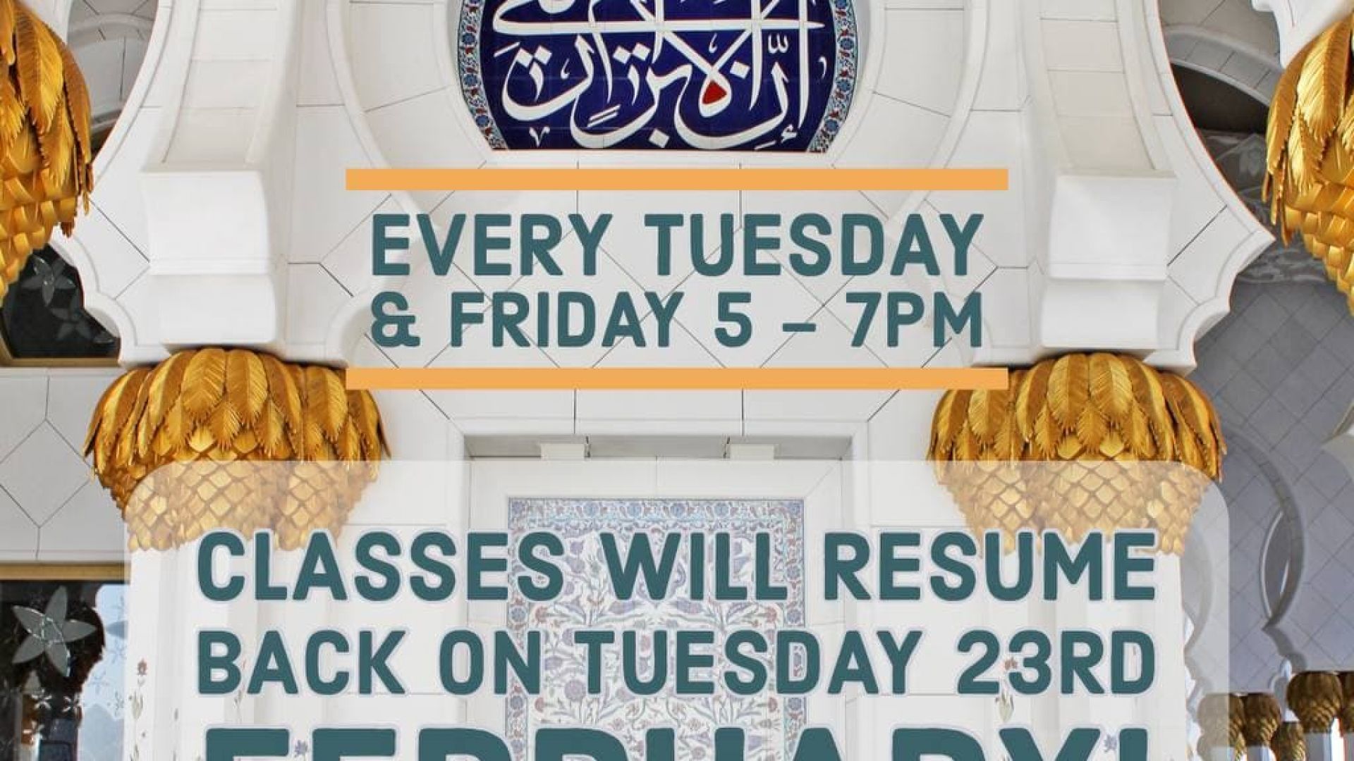 Classes will resume on Tuesday 23rd February 2020 at 5:00pm