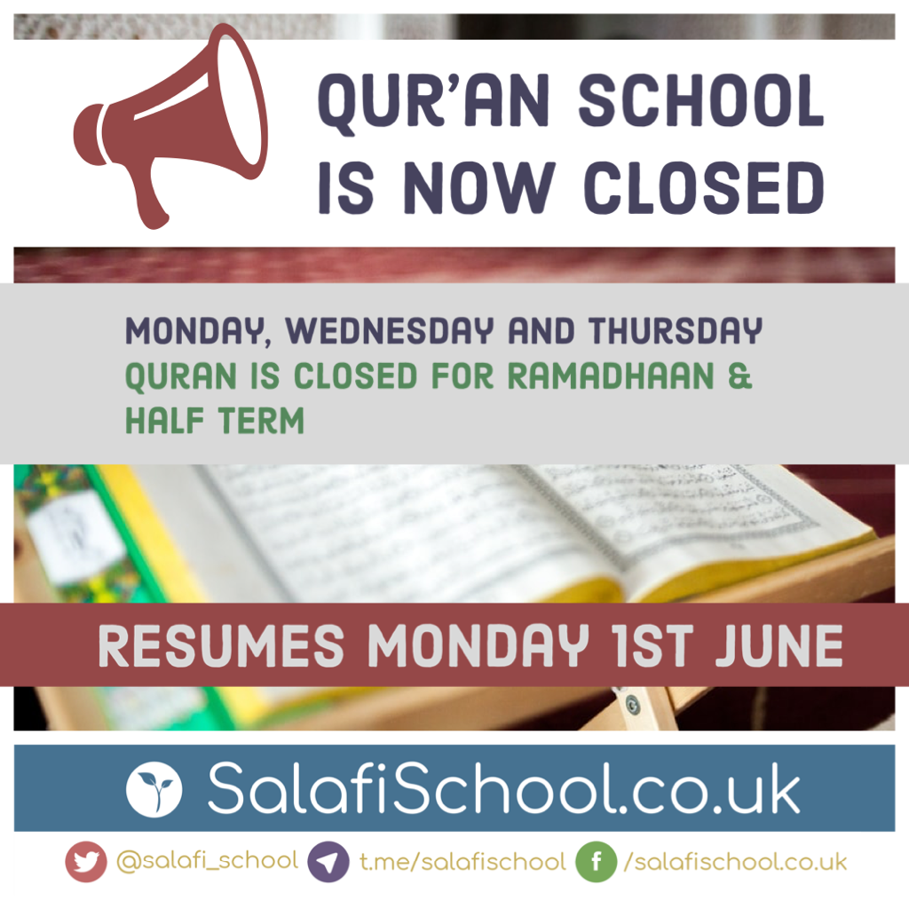 Please watch out for regular updates via our Social Media Twitter; (@salafi_school), Facebook; (@salafischool) or join us on our telegram channel (telegram.me/salafischool)
