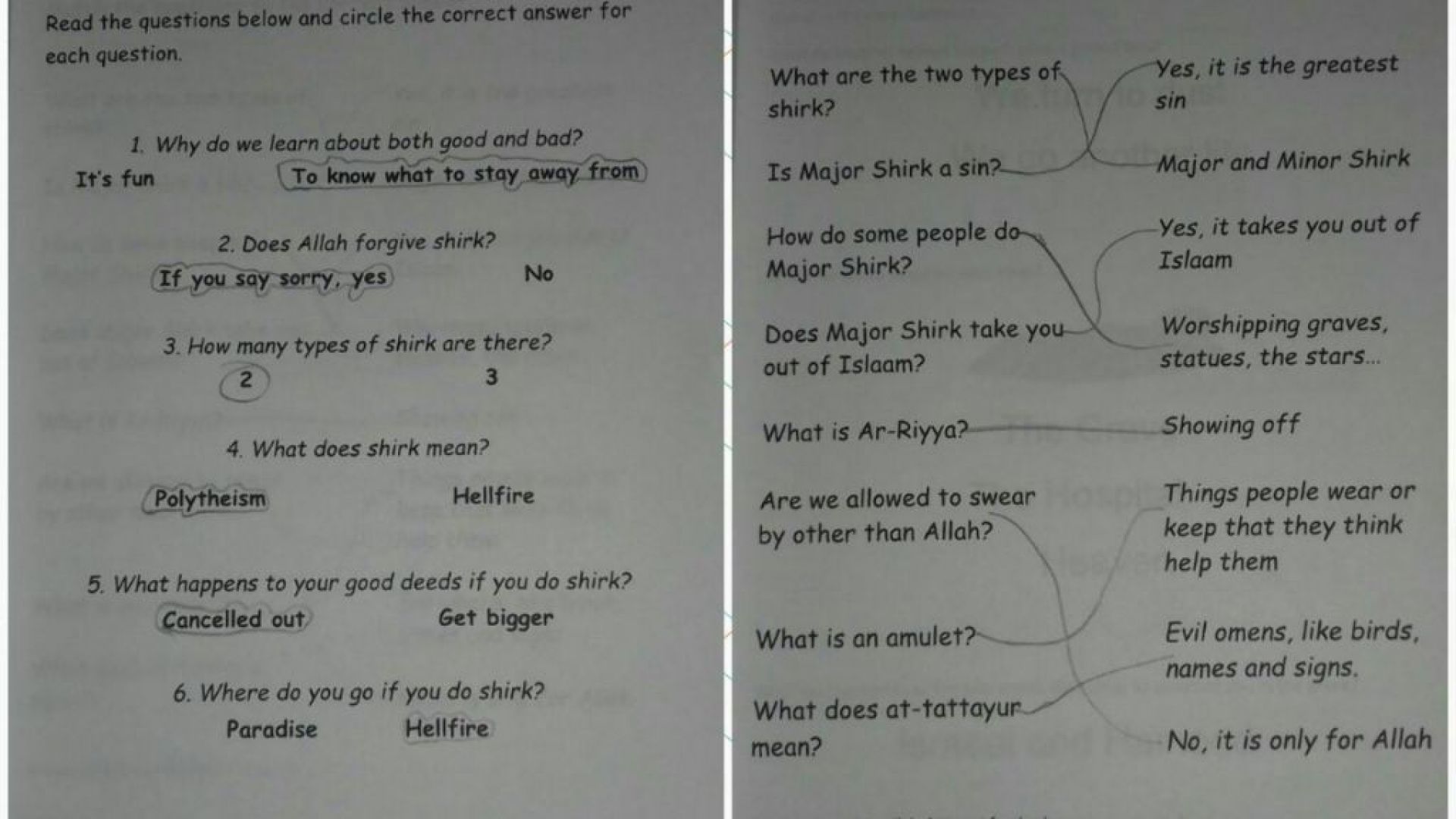 Young Learners 6-7 Class have been learning about the meaning of Shirk (Polytheism) and it’s categories this week. The children have been learning through discussion by presenting examples for each type of Shirk and completing workbook activities.