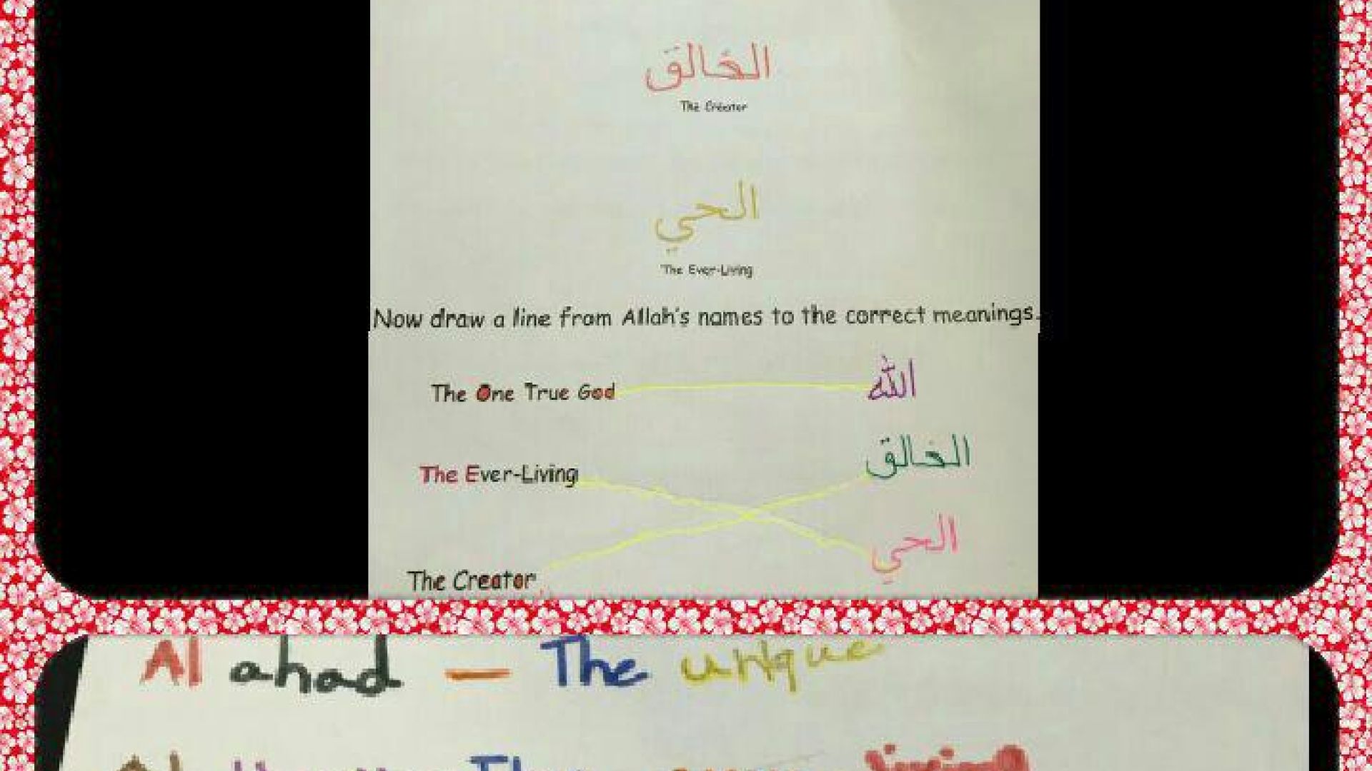 Young Learners 6-7 have been learning about Allaah during their Islamic Studies Class. They completed a worksheet of The Names of Allaah in Arabic as well as the learning about the correct meanings.