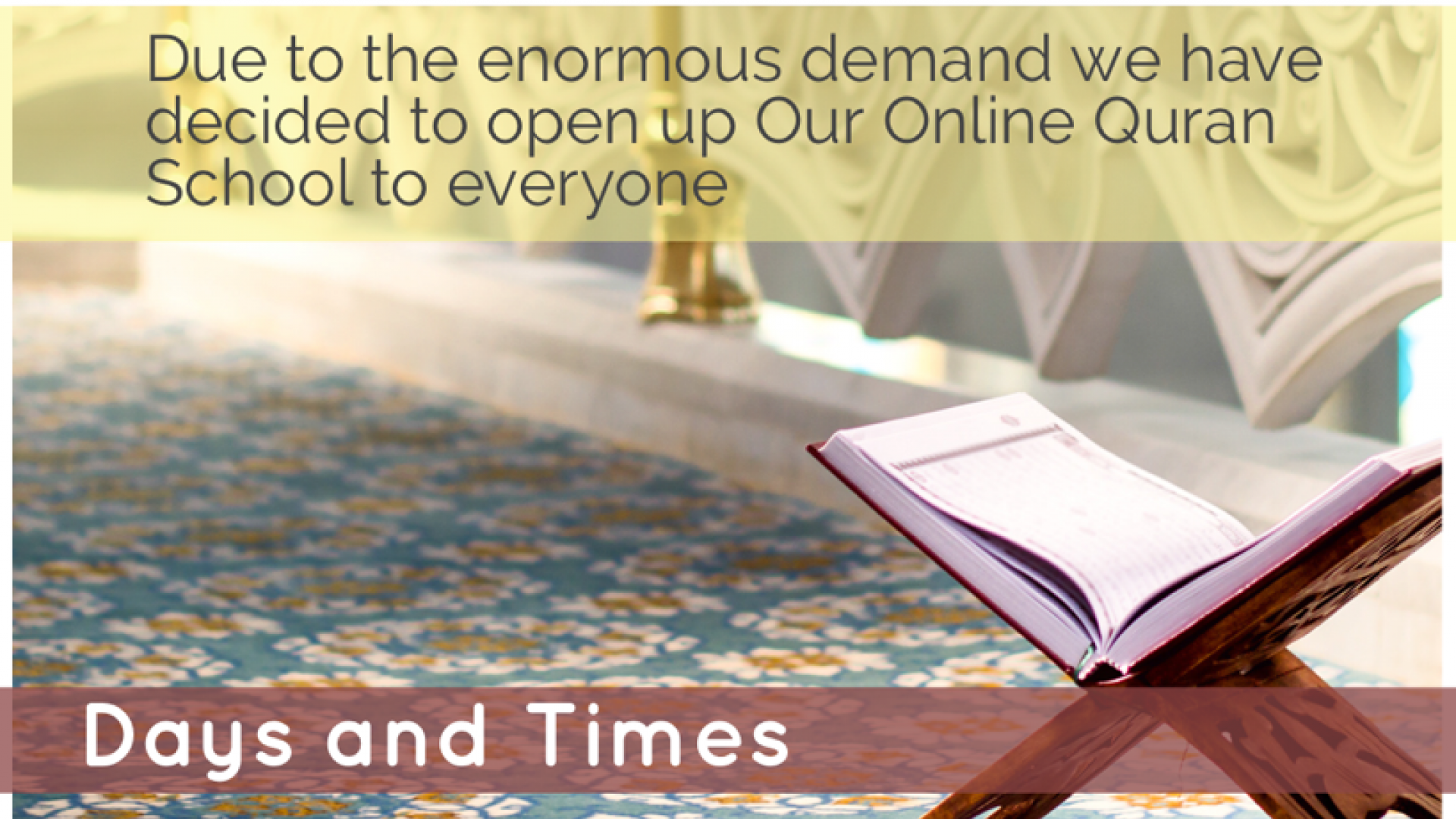 Due to the enormous demand we have decided to open up the Quran class to everyone; until space runs out.