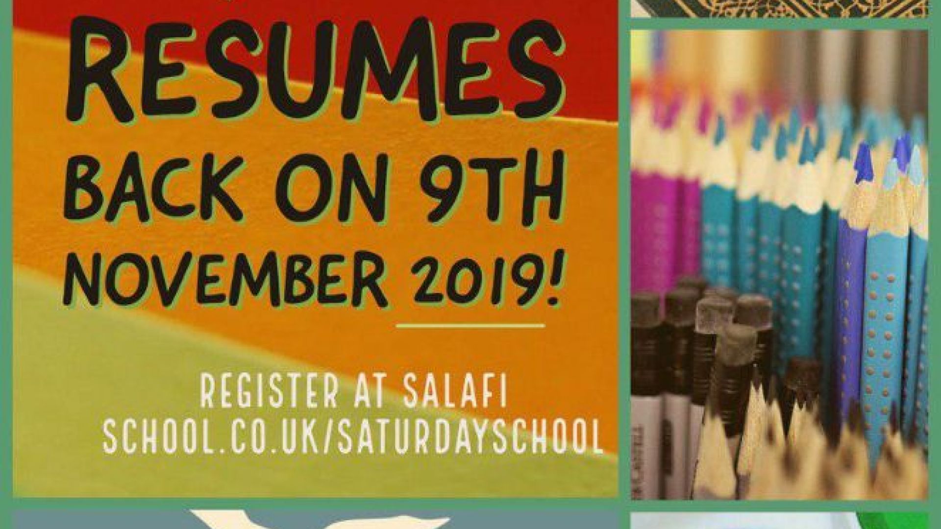 Saturday School is Back on this Saturday 9th November!