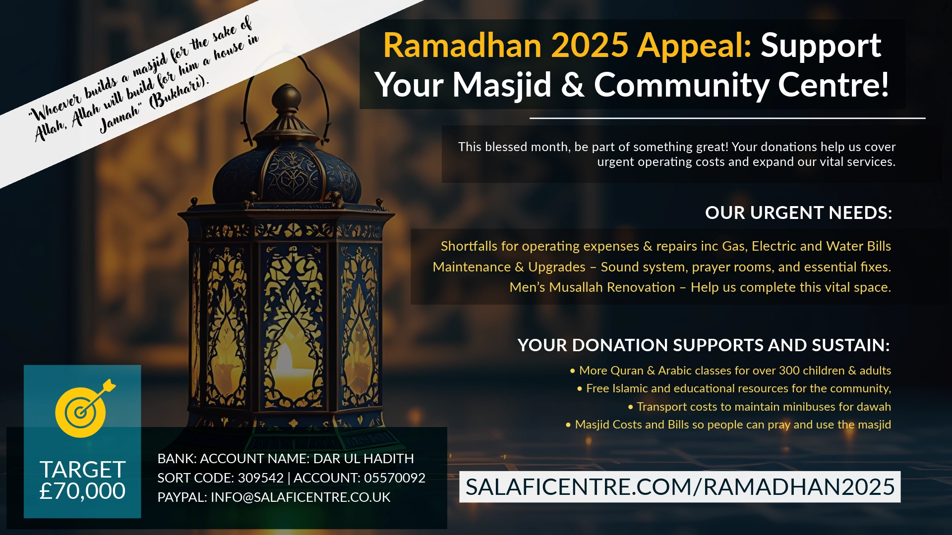 Help us maintain and improve this House of Allāh for generations to come. Every contribution makes a difference and we ask Allāh to accept it from you. May Allah bless you for your continued support, duʿās and generosity.